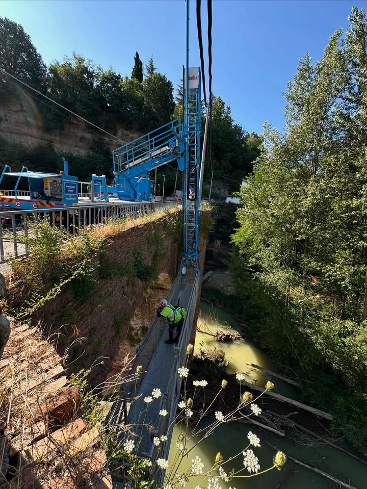 Ponte Barbotto - Intervento di rinforzo sulle strutture del ponte con opere provvisionali speciali. Esecuzione delle lavorazioni di consolidamento delle spalle/strutture con accessi dedicati e gestione attenta di vincoli e spazi di cantiere.