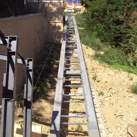 Realizzazione dell’attracco meccanizzato di collegamento tra Valchiusa e centro storico, con struttura metallica su piloni, passerelle pedonali e cabina di arrivo. Intervento pensato per migliorare accessibilità e mobilità in area collinare.