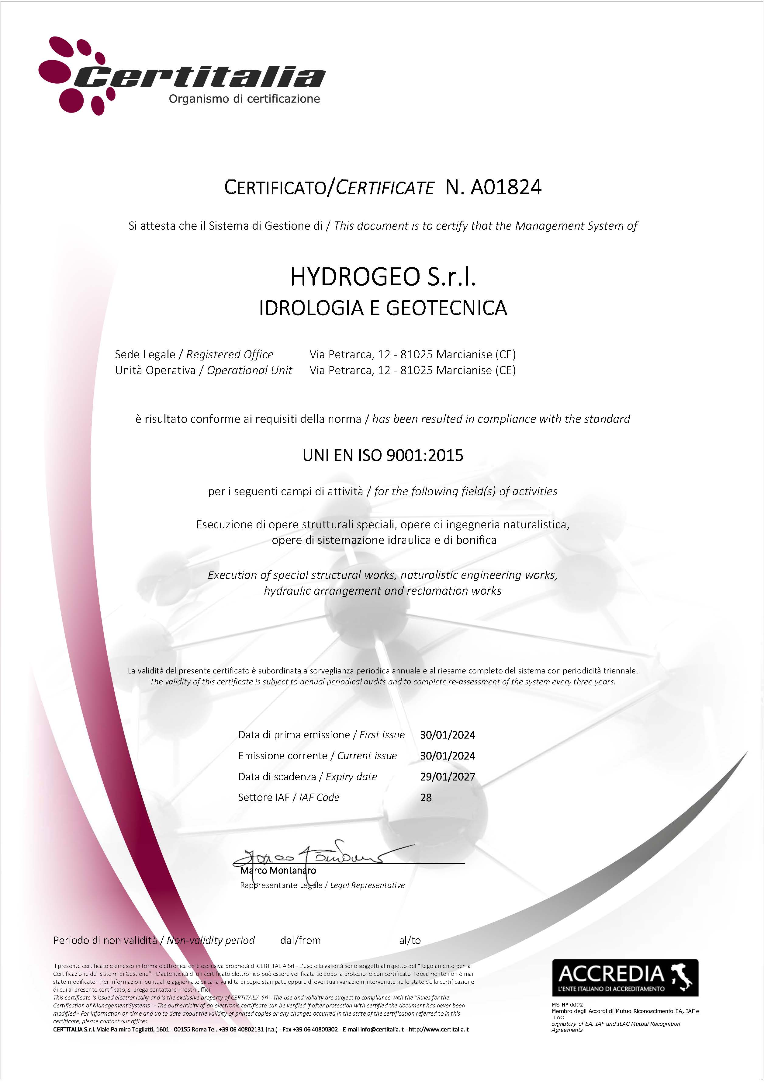 Certificazione del sistema di gestione della qualità per tutti i nostri processi operativi.