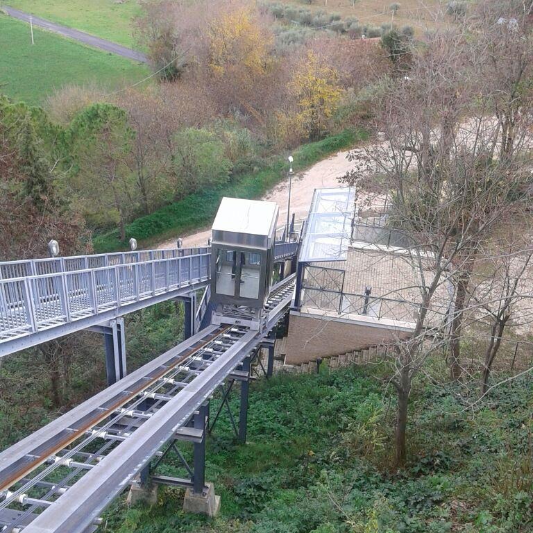 Realizzazione dell’attracco meccanizzato di collegamento tra Valchiusa e centro storico, con struttura metallica su piloni, passerelle pedonali e cabina di arrivo. Intervento pensato per migliorare accessibilità e mobilità in area collinare.