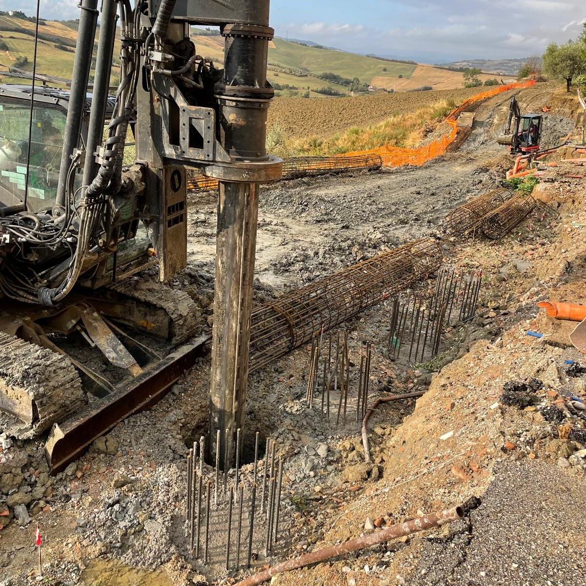 Lavori di messa in sicurezza per movimenti franosi. Realizzazione di palificata di diametro 800 per metri totali 1.500mt. Realizzazione TOC